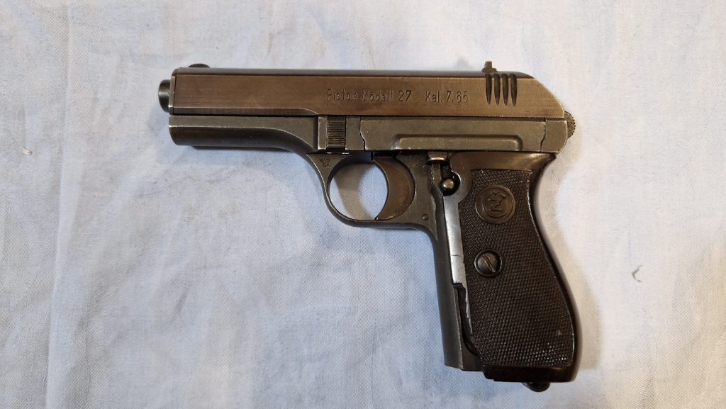 ČZ M27 is a semi-automatic handgun that was manufactured in Czechoslovakia by the Zbrojovka Česká zbrojovka (CZ) company. It is chambered in 7.65mm Browning (.32 ACP), which is a popular cartridge for small handguns.